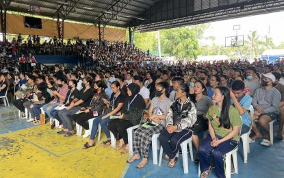 VICTIMS. Earthquake-affected residents in General Santos City gather at the Oval gym to receive assistance from the Department of Social Welfare and Development on Sunday (Nov. 19, 2023). Secretary Rex Gatchalian joined the relief operations, with 6,500 family food packs distributed to Sarangani province and General Santos City. (PNA/DSWD)