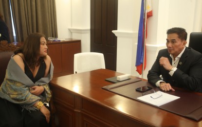 QUEST FOR JUSTICE. Pamplona, Negros Oriental Mayor Janice Degamo meets with Department of Justice Senior Deputy Chief State Prosecutor Richard Fadullon at the DOJ main office in Ermita, Manila on Tuesday (Feb. 27, 2024). Degamo acknowledged the state's efforts in pursuing the murder charges against the suspects in the March 2023 killing of her husband, Governor Roel Degamo. (Ben Pulta/PNA)