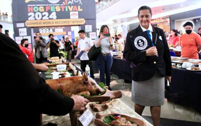 WORLD RECORD. Guinness World Record official adjudicator Sonia Usjirohochi walks around to check the pork dishes served at the National Hog Day at Gateway 2 in Cubao, Quezon City on Friday (March 1, 2024). The Philippines on Friday created the Guinness World Record for most variety of pork dishes on display with 313, the first in such category. (Robert Oswald Alfiler/PNA)