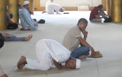 DEVOTION. Filipino Muslims pray at the Golden Mosque in Quiapo, Manila on Sunday (March 10, 2024), two days before the start of Ramadan. The holy month entails fasting and abstinence from vices and sexual relations from pre-dawn to sunset. (Avito C. Dalan/PNA)