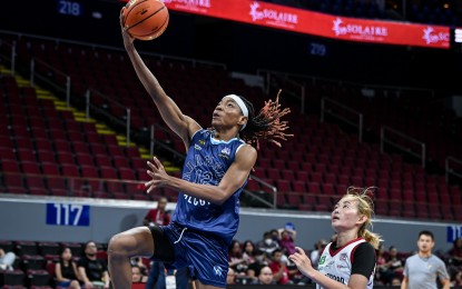 EASY LAYUP. Adamson University's Oluwakemi Adeshina goes for an easy layup during their game against University of the Philippines in the UAAP Season 87 women's basketball at Mall of Asia Arena in Pasay City on Saturday (Sept. 28, 2024). Adamson prevailed, 60-56. (PNA/UAAP)