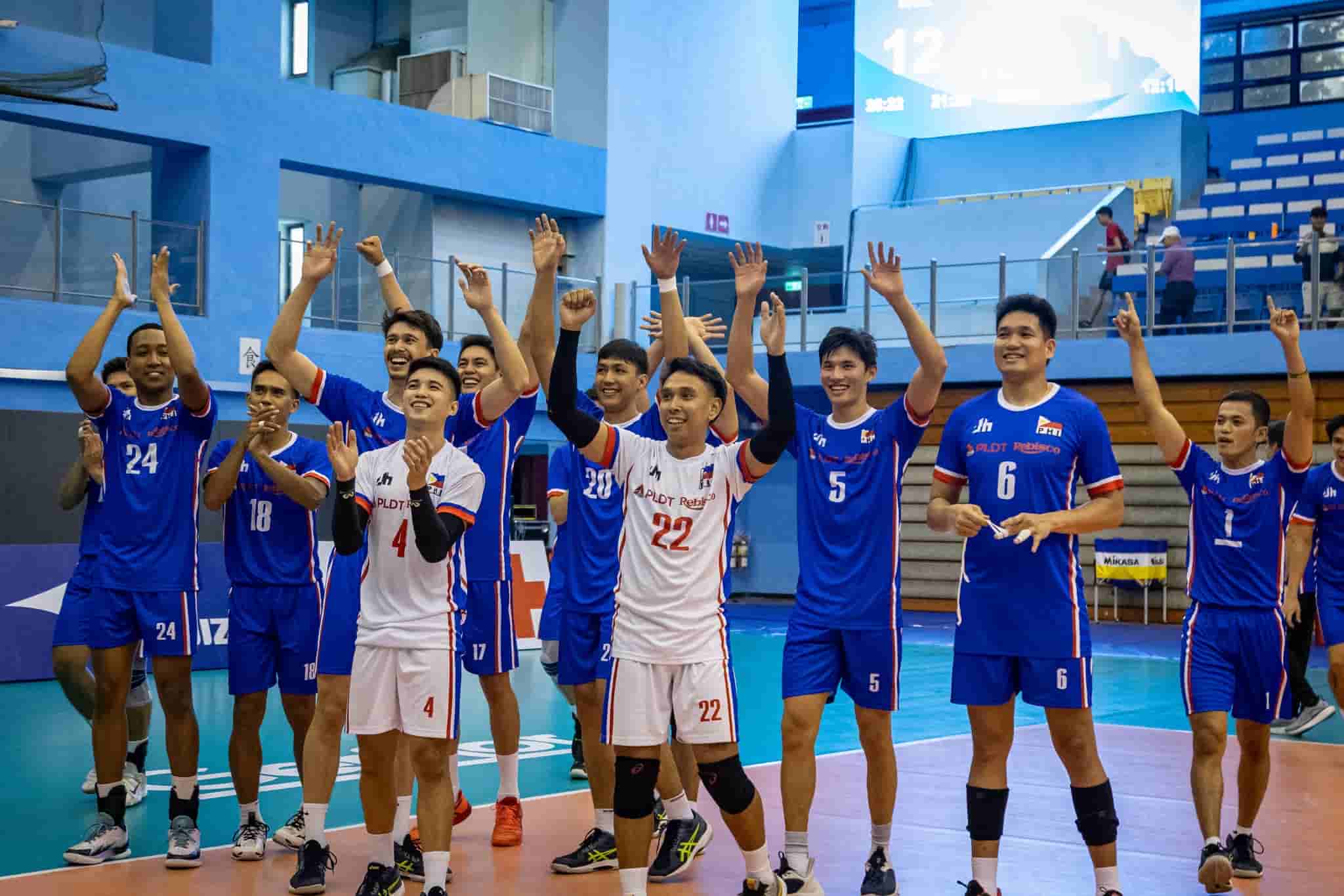 TRIUMPHANT FINISH. The Philippines defeated Mongolia in a thrilling five-setter match to remain spotless in the 2023 AVC Challenge Cup for Men. PHOTO: Asian Volleyball Confederation/Facebook
