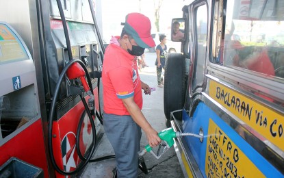 PROPOSED FARE HIKE. A gas station employee fills up a jeepney along the Emilio Aguinaldo Highway in Barangay Salitran 1, Dasmarinas City, Cavite on Oct. 11, 2022. The Land Transportation Franchising and Regulatory Board (LTFRB) on Monday (Aug. 14, 2023) has begun studying the merit of a P2 minimum fare hike for public utility jeepneys based on the petition of several transport groups due to the continued increase in fuel prices. (PNA)