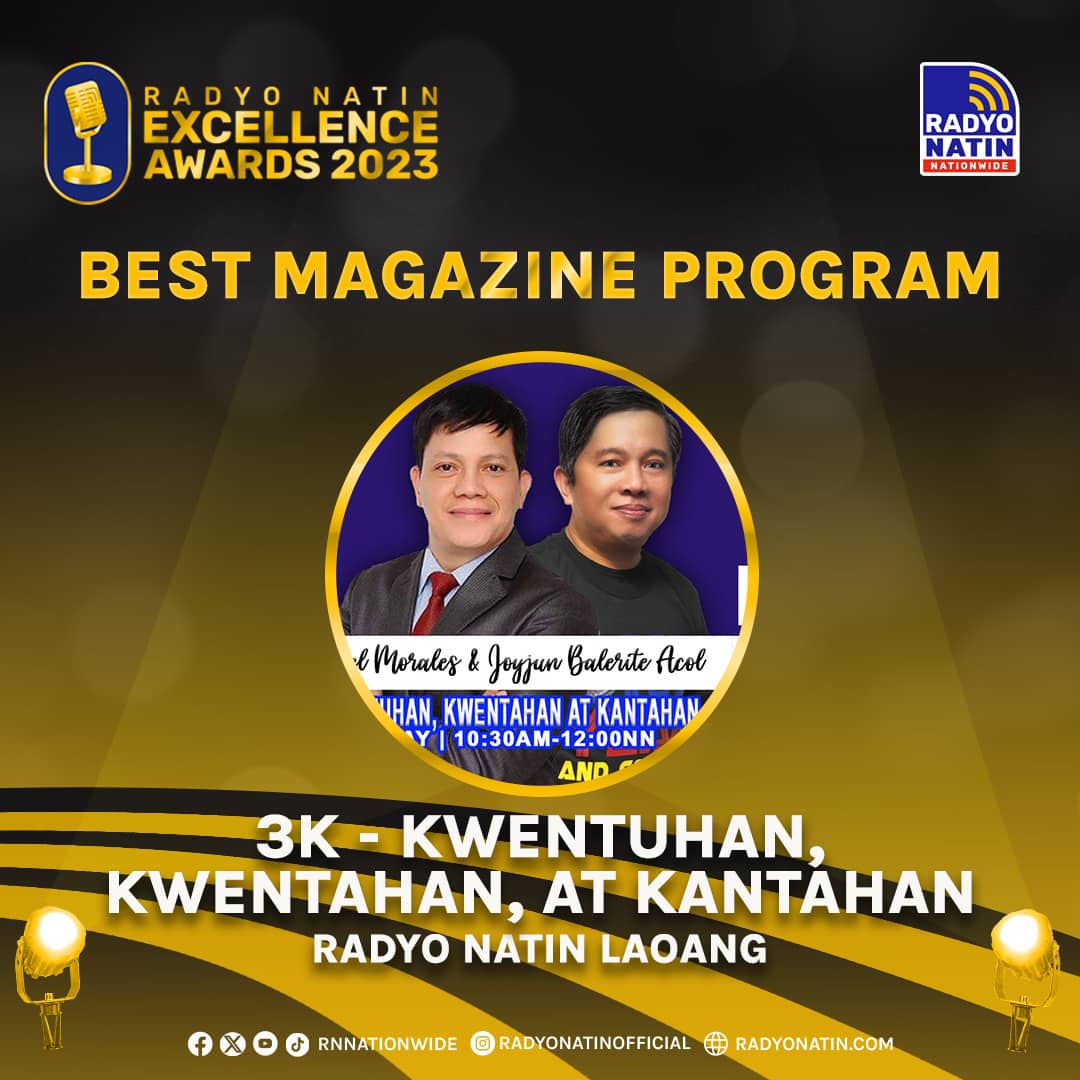 Moreover, Best Public Affairs Program citation went to Radyo Natin Guimba's Guimba Ngayon – Walang Kukurap while Radyo Natin Laoang, Northern Samar's 3K – Kwentuhan, Kwentahan, at Kantahan, and Radyo Natin Tacurong, Sultan Kudarat's Eskuwelokohan claimed Best Magazine Program and Best Entertainment Program.