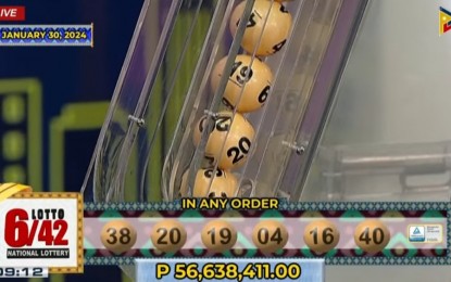 The winning combination of 38-20-19-04-16-40 carried a total jackpot prize of P56,638,411.00 and was won by a bettor who bought a ticket in Pililla, Rizal, the Philippine Charity Sweepstakes Office (PCSO) said in an advisory on Wednesday.