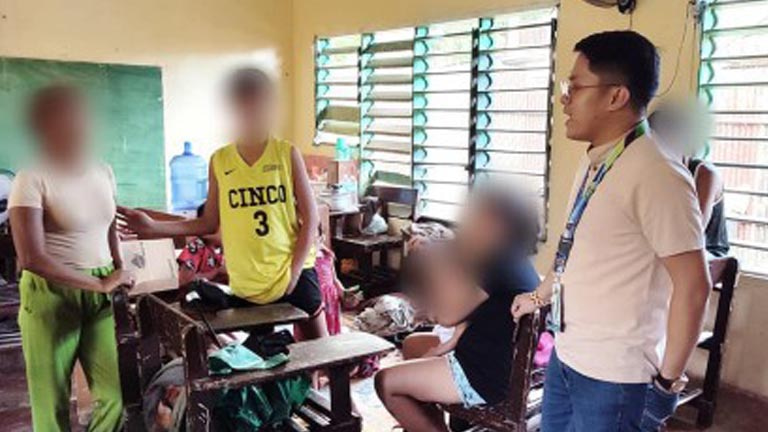 SECURING THE EVACUEES. A staff member of the City Social Welfare and Development Office (CSWDO) in Butuan City checks the situation of the affected individuals inside the evacuation center in Barangay Maon on Tuesday (Feb. 6, 2024). The CSWDO said about 2,947 families from the city's 21 barangays have been affected by flooding due to the continuing rise of the water level in the Agusan River. (PNA/Butuan CSWDO)
