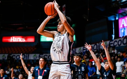 EYE ON THE PRIZE. Adamson University's Earl Medina fires a triple in their rubber match against National University-Nazareth School for the UAAP Season 86 juniors basketball title at Filoil EcoOil Centre in San Juan City on Sunday (Feb. 11, 2024). The Baby Falcons won, 90-73. (PNA/UAAP)