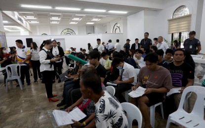 VOTER SIGN-UP. Voter applicants queue at the Comelec main office in Intramuros, Manila on Monday (Feb. 12, 2024). The voter registration period for the 2025 midterm elections will run until Sept. 30, 2024. (Yancy Lim/PNA)