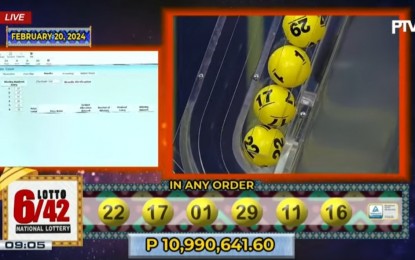 MANILA – A bettor from Leyte province bagged the P10.9 million jackpot in Tuesday night's Lotto 6/42 draw.
