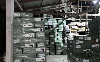 VAPE PRODUCTS. The Bureau of Internal Revenue confiscates 1,029 master boxes (or 102,900 bottles) of vape products during a raid of a warehouse located in San Pablo City, Laguna. The BIR, as early as November 2022, has already executed raids against illicit vape products. (PNA/BIR)