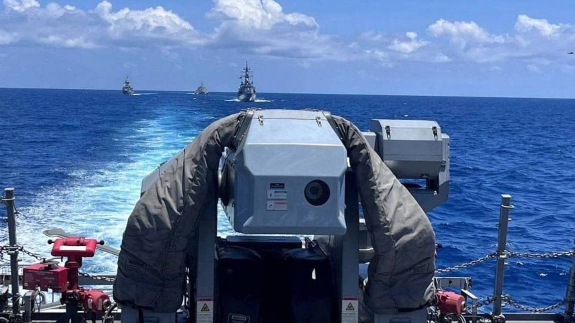 QUAD DRILLS. Photo taken from BRP Antonio Luna shows Australia's HMAS Warramunga, USS Mobile and Japan's JS Akebono conducting division tactics exercise or Officer of the Watch maneuver during the first Multilateral Maritime Cooperative Activity in the West Philippine Sea on Sunday (April 7, 2024). The naval assets also held communication and photo exercises. (PNA/BRP Antonio Luna FF-151)