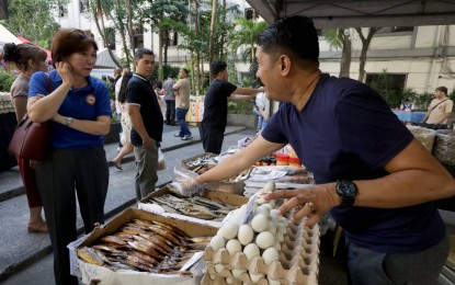 CHEAPER HERE. Employees buy fresh and lower-priced agricultural products at the Kadiwa ng Pangulo located at the inner court of Manila City Hall on Tuesday (April 16, 2024). The Kadiwa makes farmers' produce and other food products accessible and affordable to communities. (Yancy Lim/PNA)