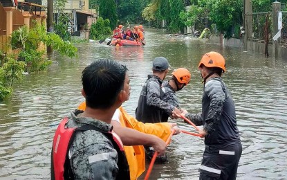 AGHON'S WRATH. Rescue personnel brave floods to evacuate residents in Lucena City, Quezon province at the height of Typhoon Aghon on May 26, 2024. The National Disaster Risk Reduction and Management Council (NDRRMC) reported on Thursday (May 30, 2024) that the confirmed deaths due to the typhoon's effects has climbed to six. (PNA/Quezon PDRRMO)