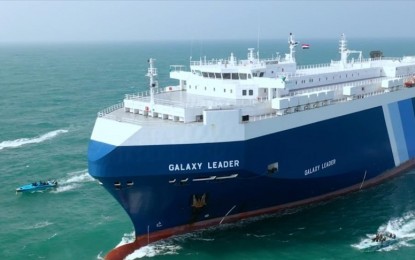HOSTAGE RELEASE. The cargo ship MV Galaxy Leader in this undated photo. The Department of Foreign Affairs said on Tuesday (Aug. 6, 2024) that there is no real progress yet in the appeal to release the seafarers of MV Galaxy Leader, held hostage by the Houthis in Yemen since November 2023. (PNA/Anadolu)