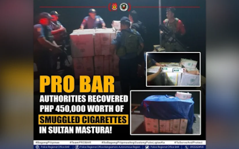 SULTAN MASTURA, Maguindanao del Norte – Police in the Bangsamoro Autonomous Region in Muslim Mindanao (BARMM) seized P450,000 worth of smuggled cigarettes in an early-morning operation here Saturday.
