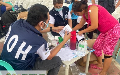 HEALTH CARE AID. Department of Health (DOH) 5 (Bicol) personnel provide free medicine to storm victims in Nabua, Camarines Sur in this undated photo. The DOH-5 has provided Kristine-affected Bicolanos medical and logistical assistance worth P9.92 million. (PNA/DOH-5)