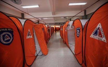 PEPITO-READY. Modular events have been cleaned and assembled at the evacuation center of flood-prone Barangay Bagong Silangan in Quezon City on Friday (Nov. 15, 2024) in anticipation of the possible effects of Typhoon Pepito. There are food packs and medicines while the local government has dispatched 31 lifeboats to low-lying communities. (PNA/Joan Bondoc)